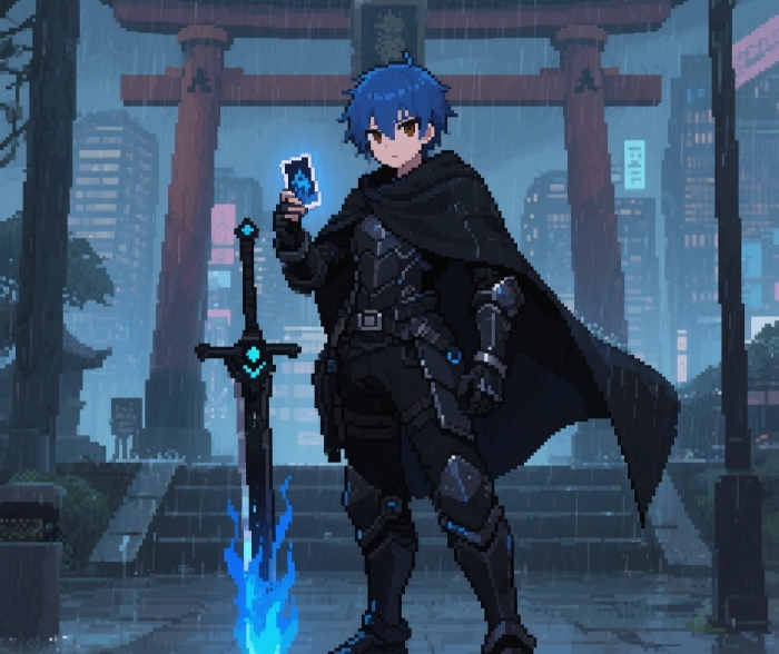 刹那间,一阵神秘而耀眼的光芒绽放开来,漆黑如墨的铠甲仿若从黑暗中诞生的守护之力,一件又一件地迅速装备在士道身上。