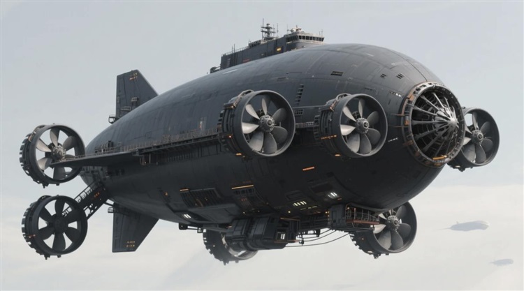 而在西北边的天空上,黑色巨兽在天空中正缓缓航行。与战舰那充满科幻感的造型截然不同,这艘名为“深渊号”的货运舰呈现粗壮的水滴形,四周布满了巨大的螺旋桨,尾部更有一个狰狞的巨型推进器。和那战舰显然走的不是一个技术路线。