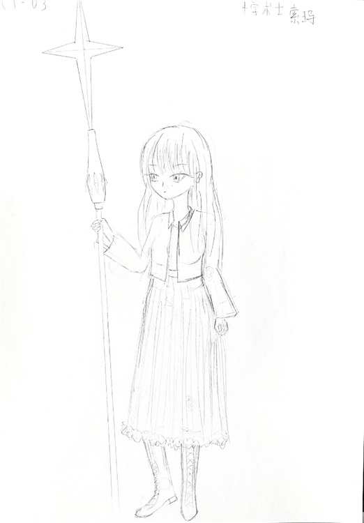 十字术士形体修长,身穿红色上衣和黑色的连衣裙,一头黑色长发都快要挡住眼睛。她走上前,双手握着法杖对苏乃·凛行礼,声音沉稳。