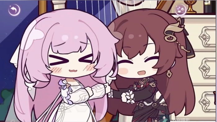 随后米迦一边哼唱轻柔的歌声,一边带着雨晴旋转舞动着。