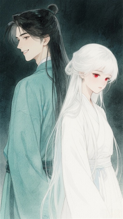 只见一男一女站在不远处,男子身着简洁的青布长衫,面容俊朗,眼神里带着一丝不易察觉的谄媚;女子穿着朴素的白衣素裙,一头白发在阳光下格外醒目,红色的瞳孔怯生生地看着她,下意识地躲在男子身后。