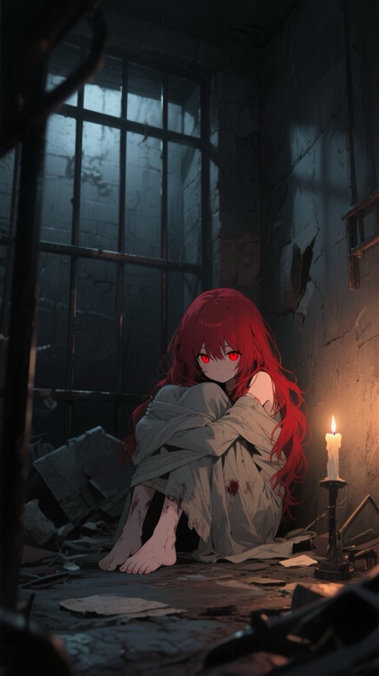 一束光恰好在此时穿进牢房内部,照亮了少女鲜红的头发。