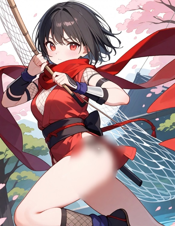 二人只见一位靓丽美少女忍者出现在二人面前。