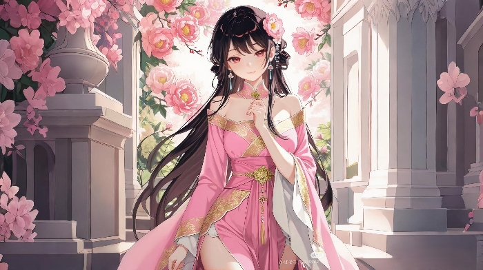 只见一个约莫二十岁出头的少女,正一脸新奇地东张西望。她穿着一身粉色流云锦缎法衣,衣料在阳光下流淌着柔和的灵光,一看就价值不菲。腰间系着一条缀满细碎冰晶的丝绦,随着她的走动发出清泉般的脆响。