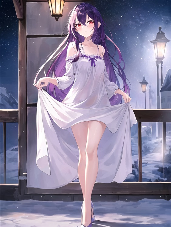 裙摆刚刚遮住大腿根部,露出两条被纯白丝袜包裹的修长美腿。