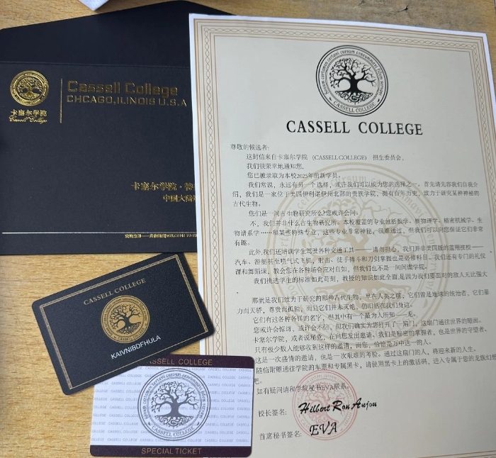 落款是“CASSELL COLLEGE(卡塞尔学校)”。