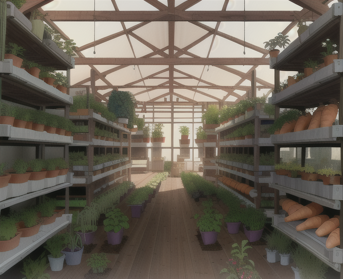 眼前是一个巨大得惊人的室内空间。左右两侧矗立着足有两三层楼高的金属框架种植架,每一层都整齐码放着装满肥沃黑土的种植槽,翠绿的萝卜缨、饱满的土豆苗和鲜嫩的蔬菜在架子上生机勃勃。他们正站在一条非常宽阔的走道中央,背后就是刚刚将他们送回的、依旧涌动着微弱紫光的下界传送门。