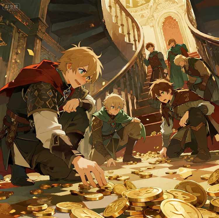 效果立竿见影!下方那些原本杀气腾腾、一心要抓“偷菜贼”的守卫们,看到眼前如同下雨般落下的金币,瞬间愣住了。长期的“熏陶”起了作用——在安格西主城,元老大人的“慷慨”撒币行为早已深入人心,金币在他们眼中就是最直观的财富象征!至于那几株被偷的“紫色杂草”?谁知道那是什么玩意,值几个钱?守卫们的注意力瞬间被金光吸引,纷纷弯腰,甚至争抢起地上的金币来!追捕行动顿时乱成一团。