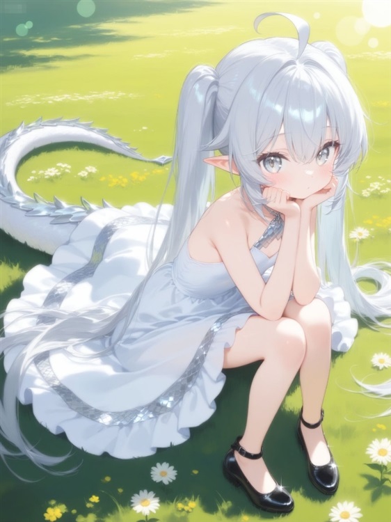 坐在草地上的夏依