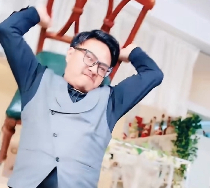 “如果你是最强魔王就跳舞。”随着一阵动感的音乐,顶着齐南大头的魔王站在中间与左右伴舞的贝利亚和奶龙一起全身扭动着。