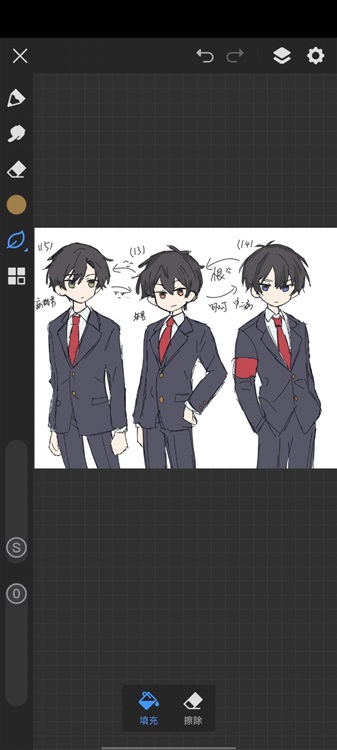 然后我现在正在搞人设图和校服,给你们看看长什么样