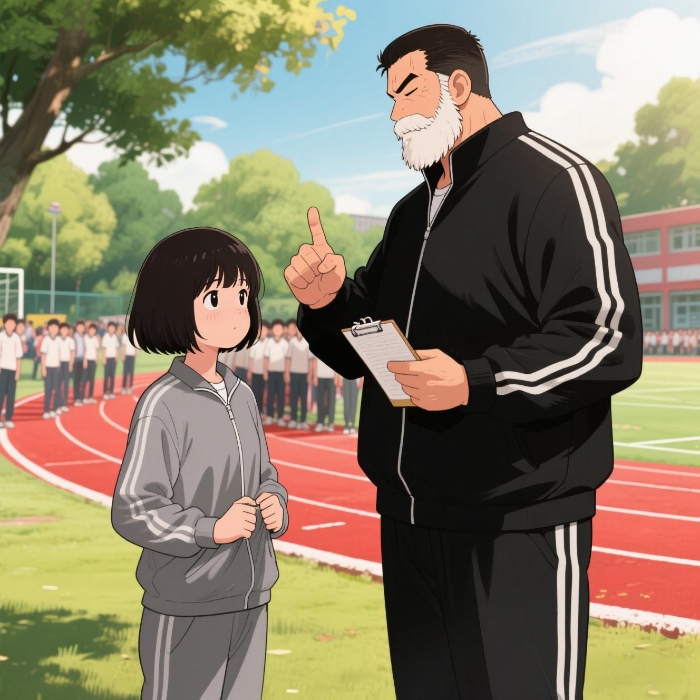 体育老师是个白胡子老头儿,背着手溜达过来时总让我想起《灌篮高手》里那个安西教练。眼镜片后的老花镜片厚得如同瓶底。他手里握着皱巴巴的点名册。