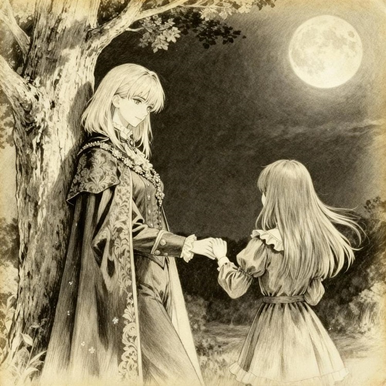 露可可停下脚步,转身面对她。月光勾勒出少女含笑的眉眼,也映照着艾德莉安柔和的侧脸。