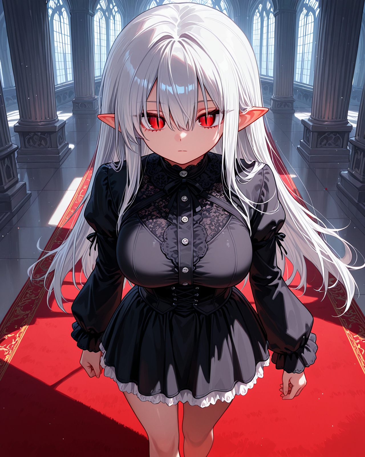 当然从她血红色的双眼与小尖耳就证明着她并非是人类,而是血族!