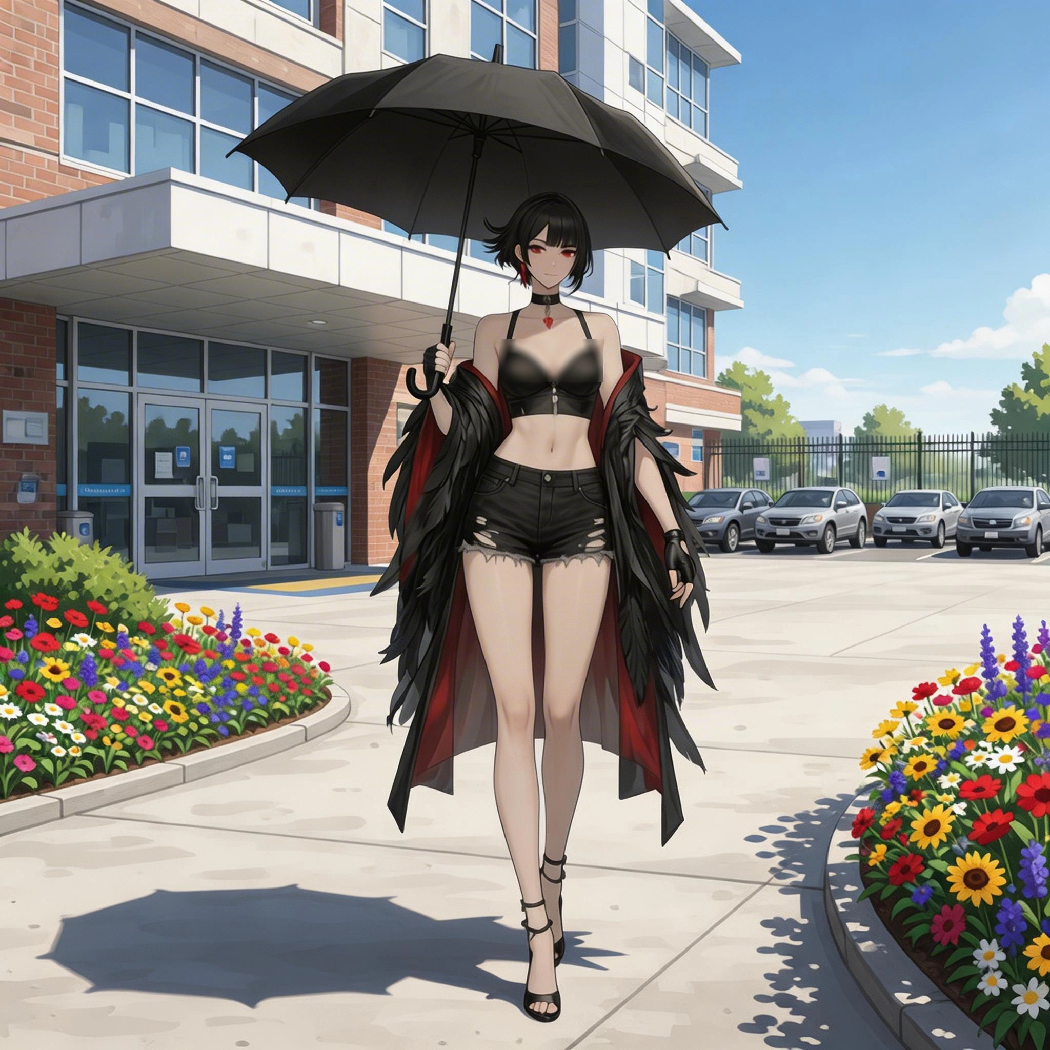 我们走出急救中心,看见一个撑着伞、穿着有些奇异的成熟大姐姐迎面走来。