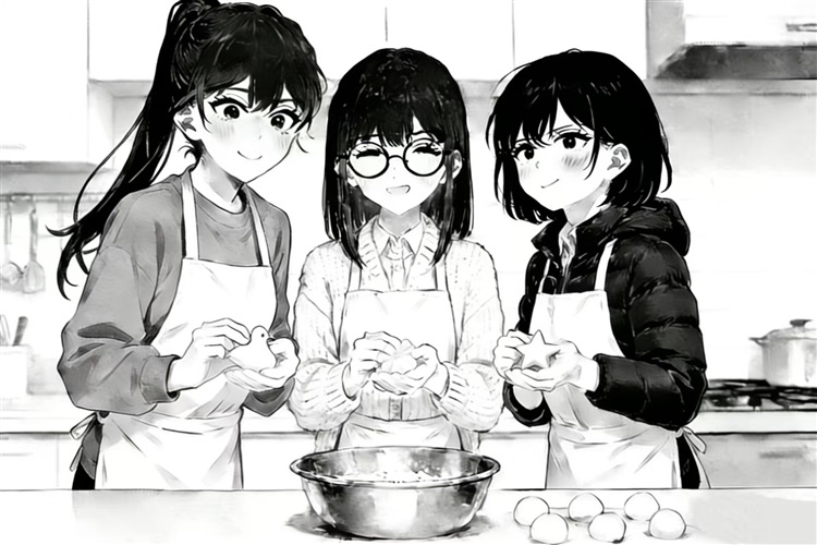 三名少女期待着,将汤圆煮到了锅里。