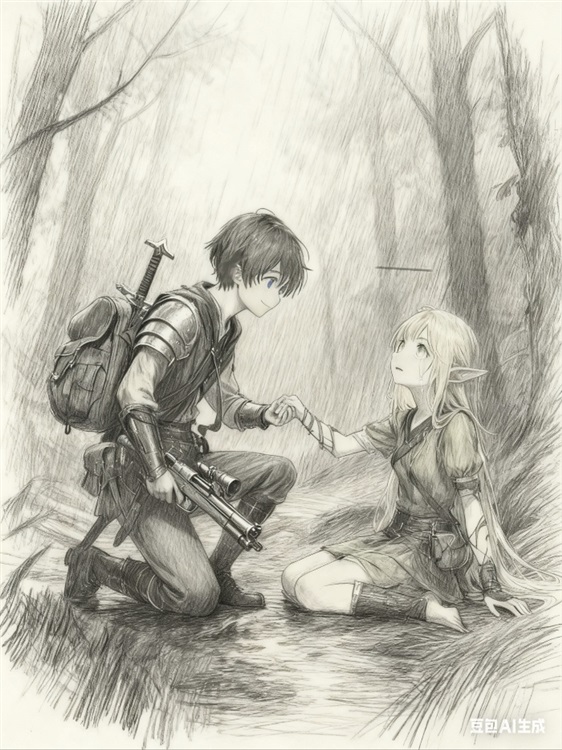 她看到,一个相当年轻的男孩半跪在自己面前,在这怪物横行,危机四伏的森林里,如同曙光一样,出现在她的人生中。