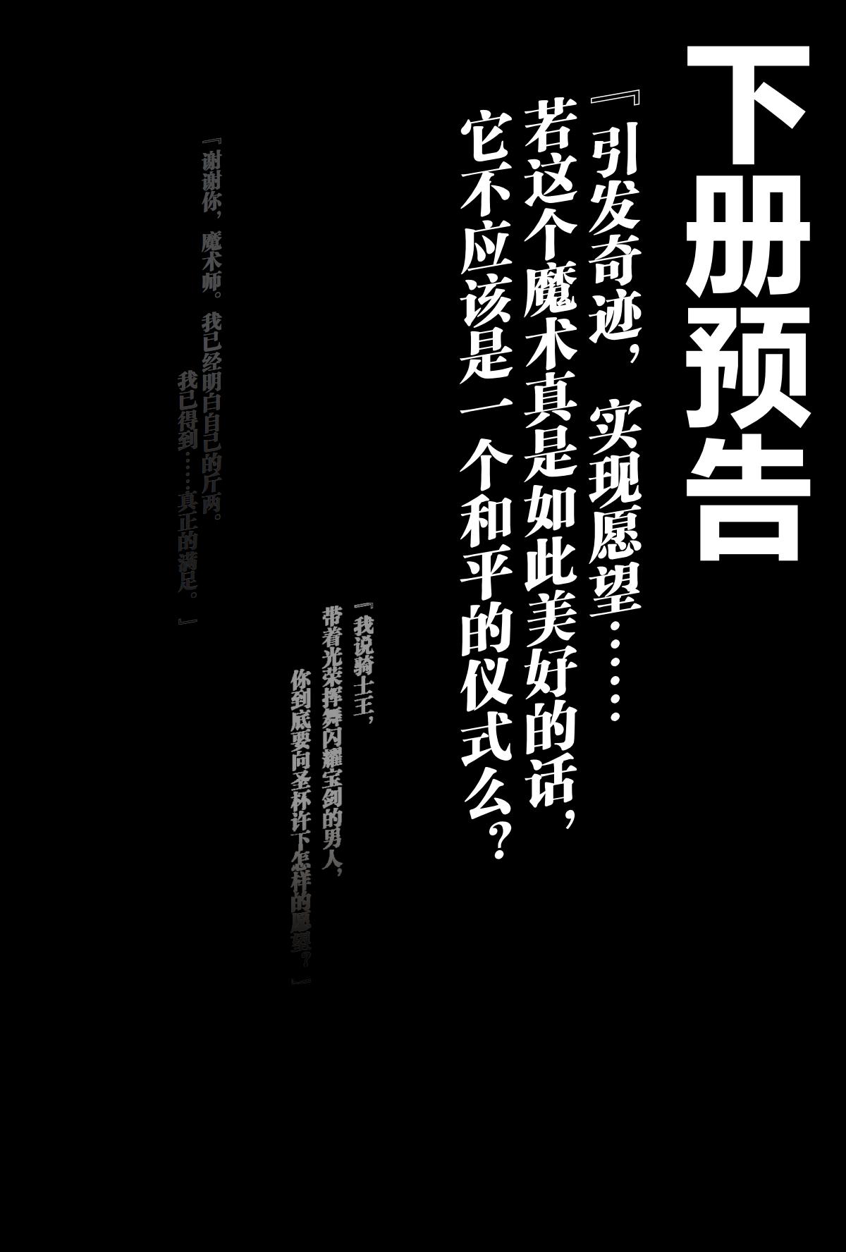 本卷主要讲述的是虽已数度登场,但并没有详细描写的两名英灵——弓兵与枪兵,以及他们的御主间的故事。