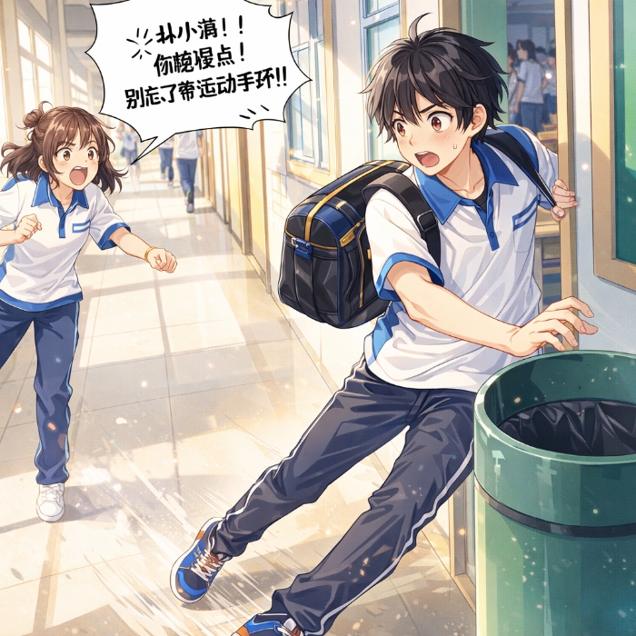 “林小满!你跑慢点!别忘了带运动手环!”