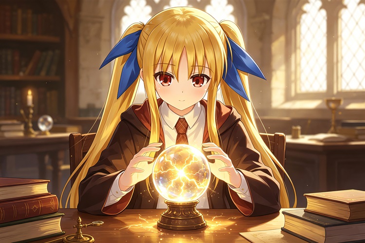 菲特依言而行,闭目凝神,努力放空思绪,将温和的雷电魔力缓缓引导向桌上的水晶球。水晶球内开始弥漫起金色的雾气,丝丝电光在其中流转。她努力集中精神,试图感知斯凯琳院长所说的“节点”。