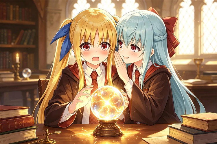 下午的占卜课被安排在学院西塔楼顶层的一间圆形教室。这里的穹顶是透明的,可以直接看到霍格沃滋上空那永恒变幻的魔法天幕,阳光透过穹顶,被过滤成柔和而神秘的光晕,洒在房间中央的水晶球、古老的塔罗牌阵和各类占卜仪器上。空气中弥漫着淡淡的檀香与不知名草药的气息,令人心神不由自主地宁静下来。