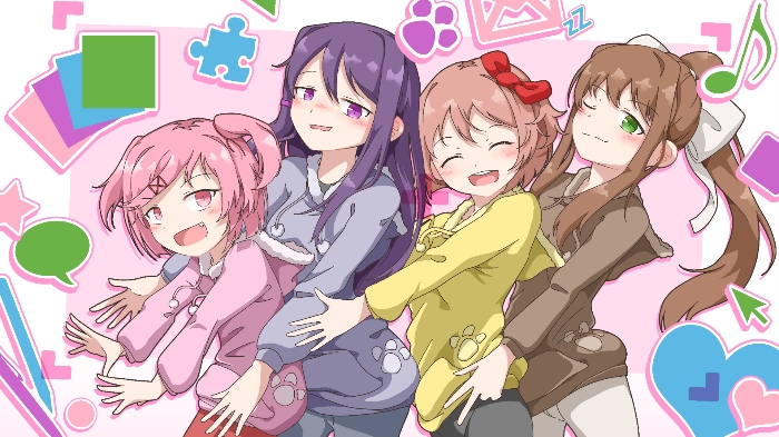 文学社成员,从左到右依次是夏树,尤莉,纱纱,莫妮卡