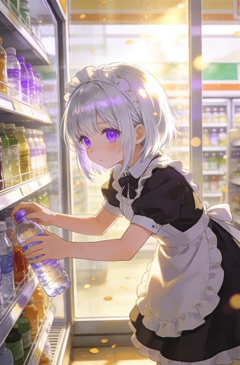 可可穿女仆装第一次整理货架的样子。