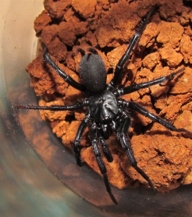 该种通体黝黑,脚上布满了用于感知振动的刚毛,非常符合人们对蜘蛛的印象。
