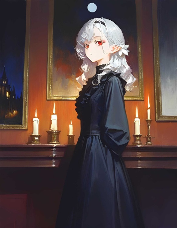 裂口女好像意识到什么,瞳孔地震,再看向空中月亮的位置,发现红月的正中央正飘着一个银发赤瞳穿着西欧古典繁复漆黑衣裙的……血族。