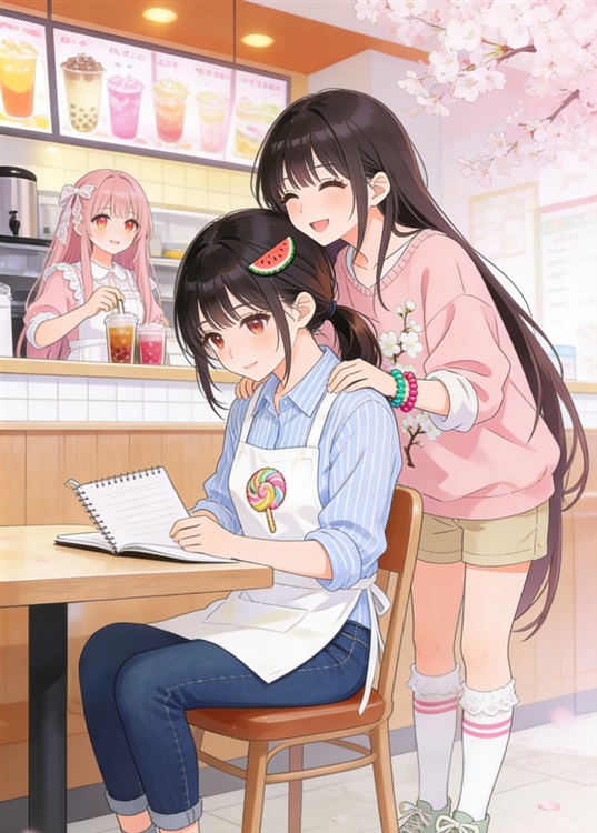 下午两点,阳光斜照进玻璃窗。邱梦正站在柜台后,仔细擦拭着配奶茶的雪克杯。她是兼职大学生,束着利落的黑茶色的马尾,穿着浅蓝条纹衬衫和牛仔裤,外添一件绣着棒棒糖的白围裙。