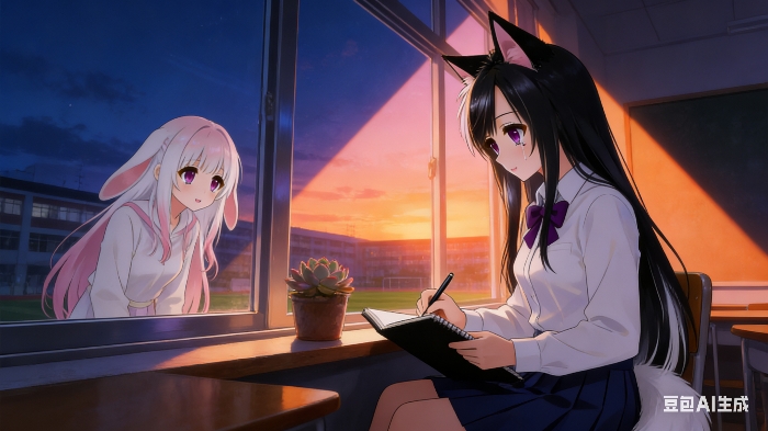 白桃桃从窗户外探过头来,兔耳朵晃了晃。