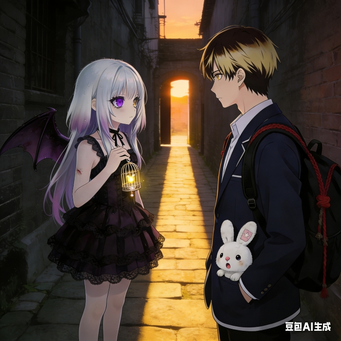 那双眼睛——左眼紫色,右眼金色——在昏暗的巷子里格外明亮。