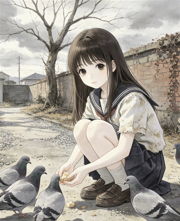 我看着她的背影。她穿着旧围裙,头发已经白了,肩胛骨的轮廓在围裙下面若隐若现。她在这个岛上住了快五十年,从一个小女孩变成了神社的“老巫女”。