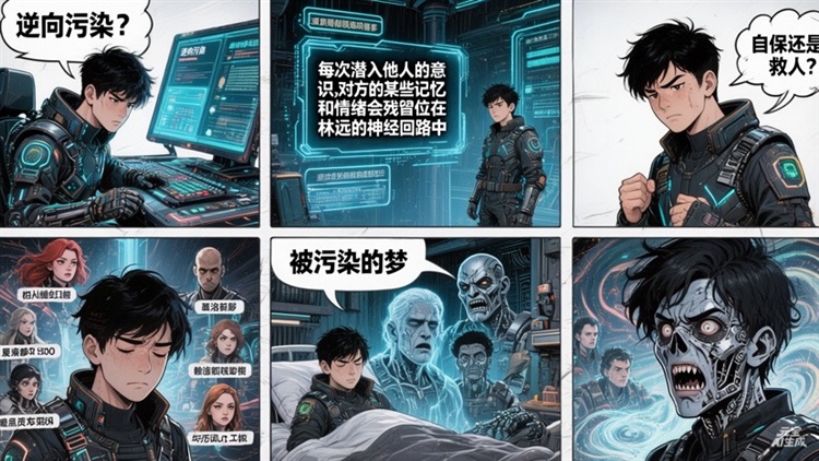 【定义:使用者通过赛博织网潜入目标意识空间时,认知边界会与目标发生部分融合。目标的部分记忆碎片和情绪基模会在神经回路中反向残留,形成类似“精神移植”的跨个体污染。】