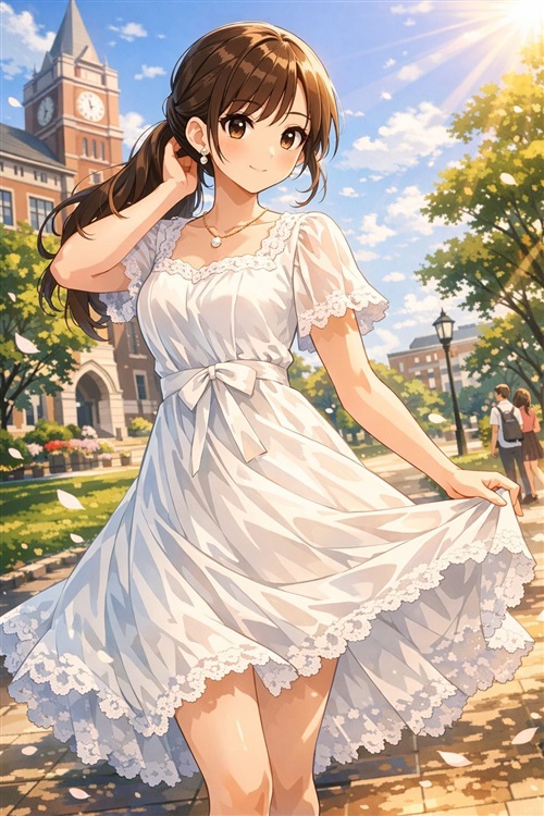 她转头看着身边这个举止得体的白裙子女生。