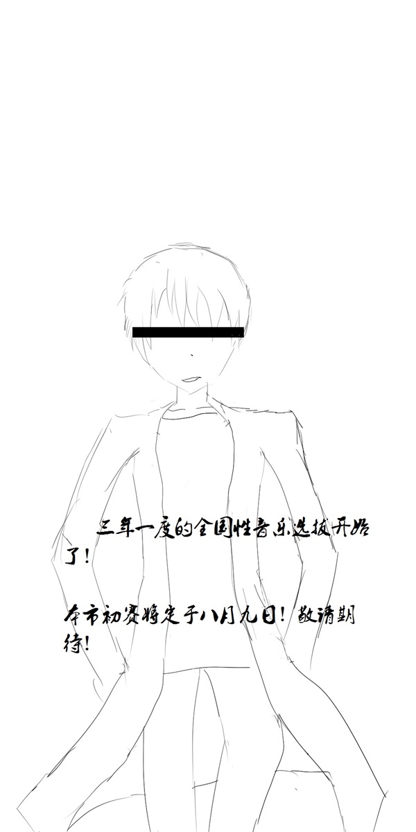 两边都有着保安在巡视场地,而最右边则有一个大大的告示牌,上面写着【三年一度的全国性音乐选拔开始了!本市初赛将定于八月九日!敬请期待!】