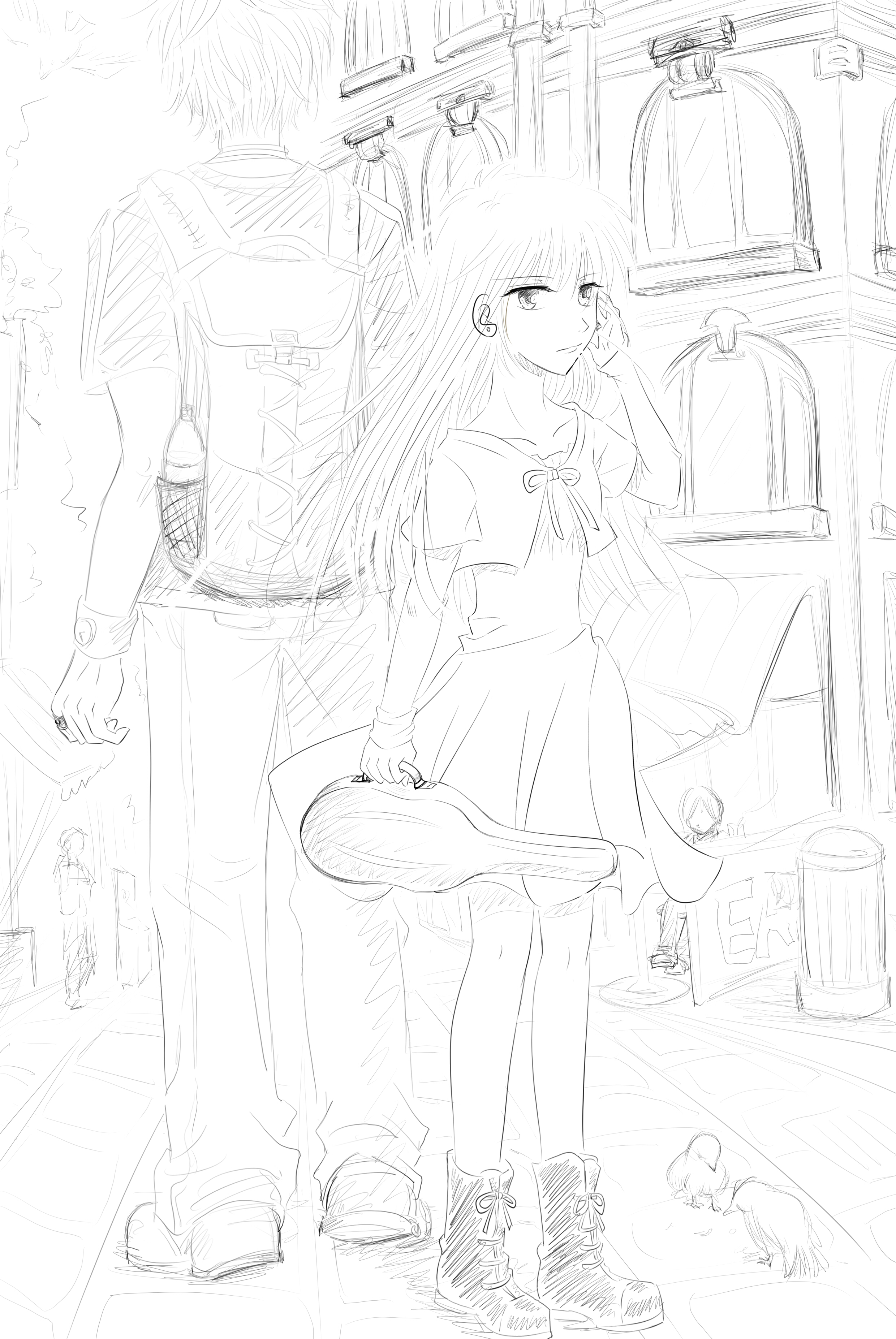 几个人离开的时候,少女注意到了仍然呆坐在店门里的年轻侍者。