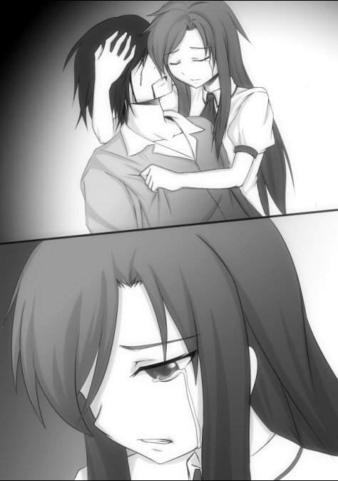 少年身体不住颤抖着,喘着不均匀的气息无力的低呢着。虽然这样,他还是依旧在微笑看着自己女朋友红川早苗的最后一面。